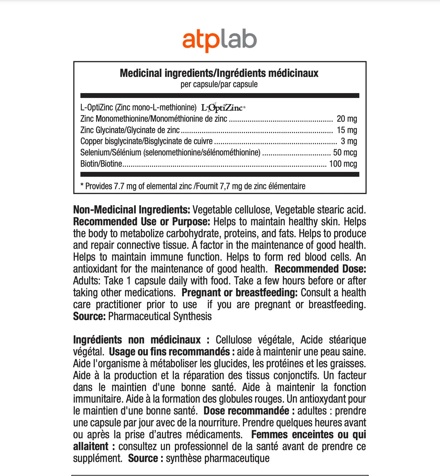 - Minéral contribuant à maintenir une peau en santé.